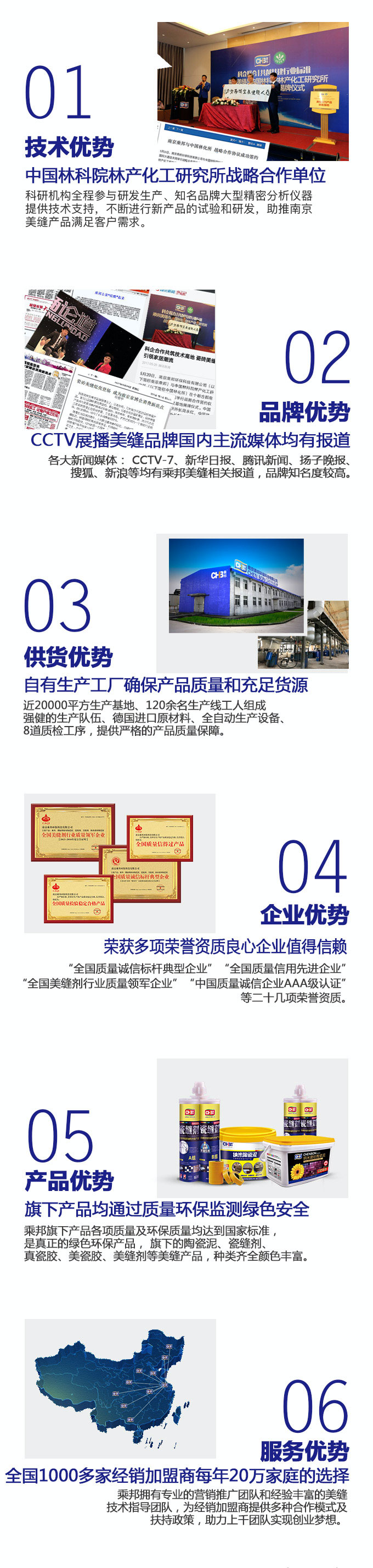 南京乘邦環(huán)保科技有限公司成立于2005年,是集南京瓷磚美縫南京美縫施工、高科技產(chǎn)品的研發(fā)與銷&售等產(chǎn)業(yè)的南京瓷磚美縫公司。目前公司主打美縫產(chǎn)品為國內(nèi)推出的傳統(tǒng)美縫劑升級(jí)產(chǎn)品:乘邦納米陶瓷泥、水性環(huán)氧彩砂,天然砂質(zhì)顏料,化妝品般安全無污染。乘邦陶瓷泥顏色豐富,大大提升裝飾效果,打造魔幻家居,讓家也可以炫酷起來。它綠色環(huán)保防霉防污,堅(jiān)硬如瓷細(xì)膩光潔,不僅做到瓷磚縫隙“不變黑”,而且在為每一個(gè)家庭健康美麗而努力,這是乘邦公司的最高準(zhǔn)則,也是乘邦人為之努力奮斗的目標(biāo),以此目標(biāo)乘邦本著"誠信、合作、專業(yè)、超越"的理念,詮釋優(yōu)質(zhì)服務(wù),演繹品質(zhì)生活。同時(shí)公司擁有一支管理完善、經(jīng)驗(yàn)豐富的專業(yè)美縫施工隊(duì)伍。在南京瓷磚美縫價(jià)格方面也有很大的優(yōu)勢(shì),每年為南京近萬家庭提供美縫服務(wù),其自主研發(fā)的乘邦牌產(chǎn)品在10余省市已有近千個(gè)代理商,在全國范圍內(nèi)享有很高的知名度。